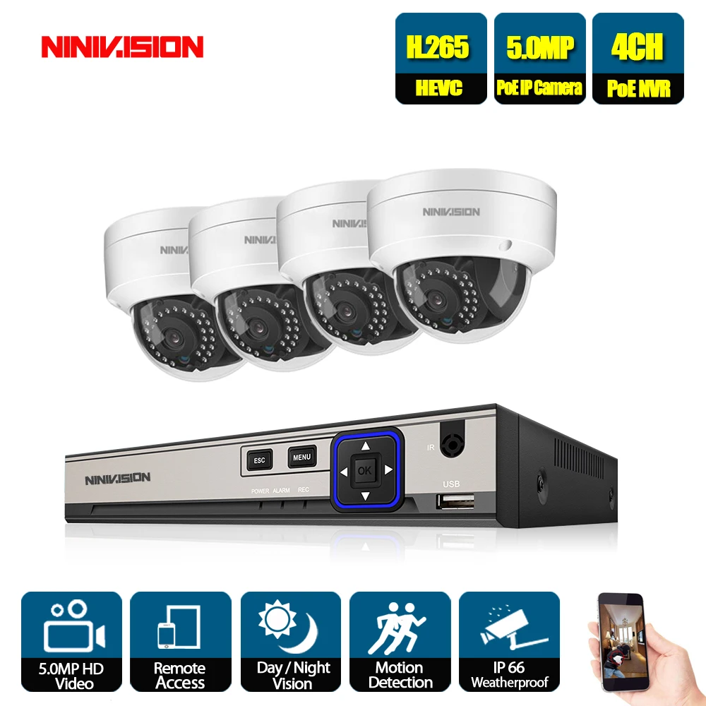 BEST 4CH CCTV System 4PCS 2592*1944 Outdoor Weatherproof Security Camera 4CH 5.0MP NVR Day/Night DIY Kit