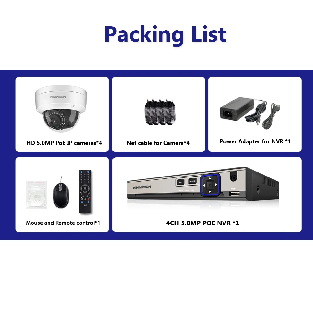 4CH CCTV System 4PCS 2592*1944 Outdoor Weatherproof Security Camera 4CH 5.0MP NVR Day/Night DIY Kit