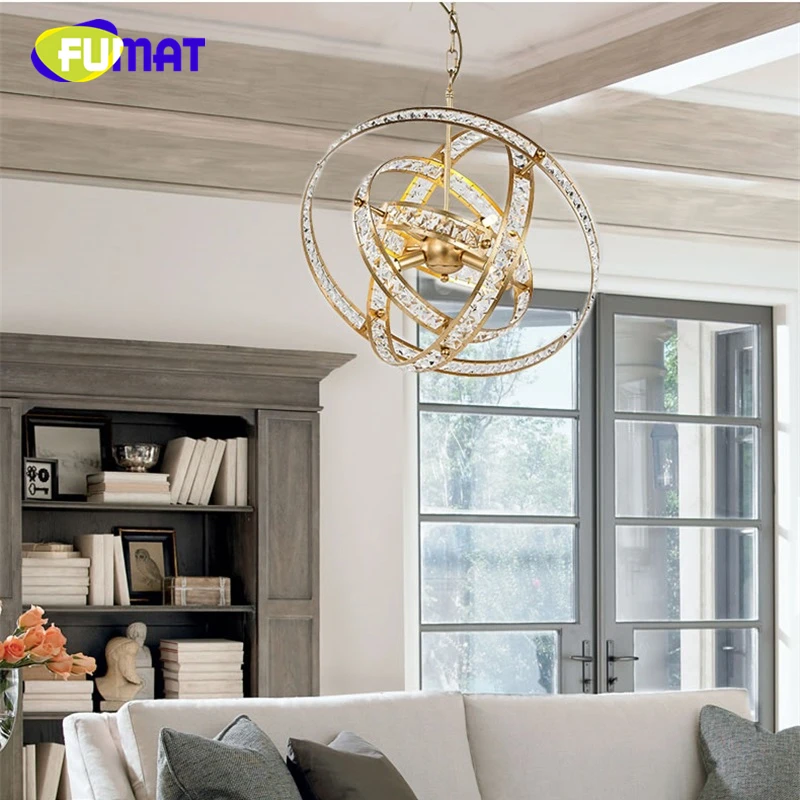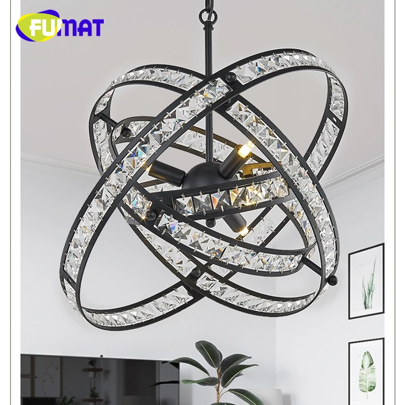 FUMAT Crystal K9 Pendant Lamps CCTV Ball Globe Shape Lights Gold Black Hanging Loft Lighting Fixtur