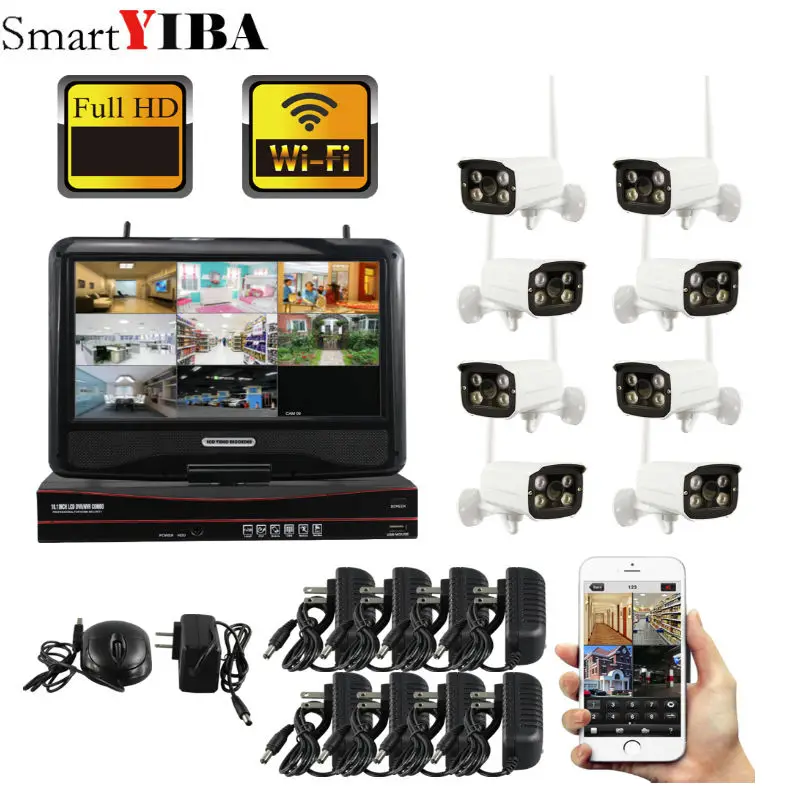 SmartYIBA 8CH Wireless IP Camera Wi-fi NVR Kit 960P HD Outdoor IR Night Vision Security Network WIF