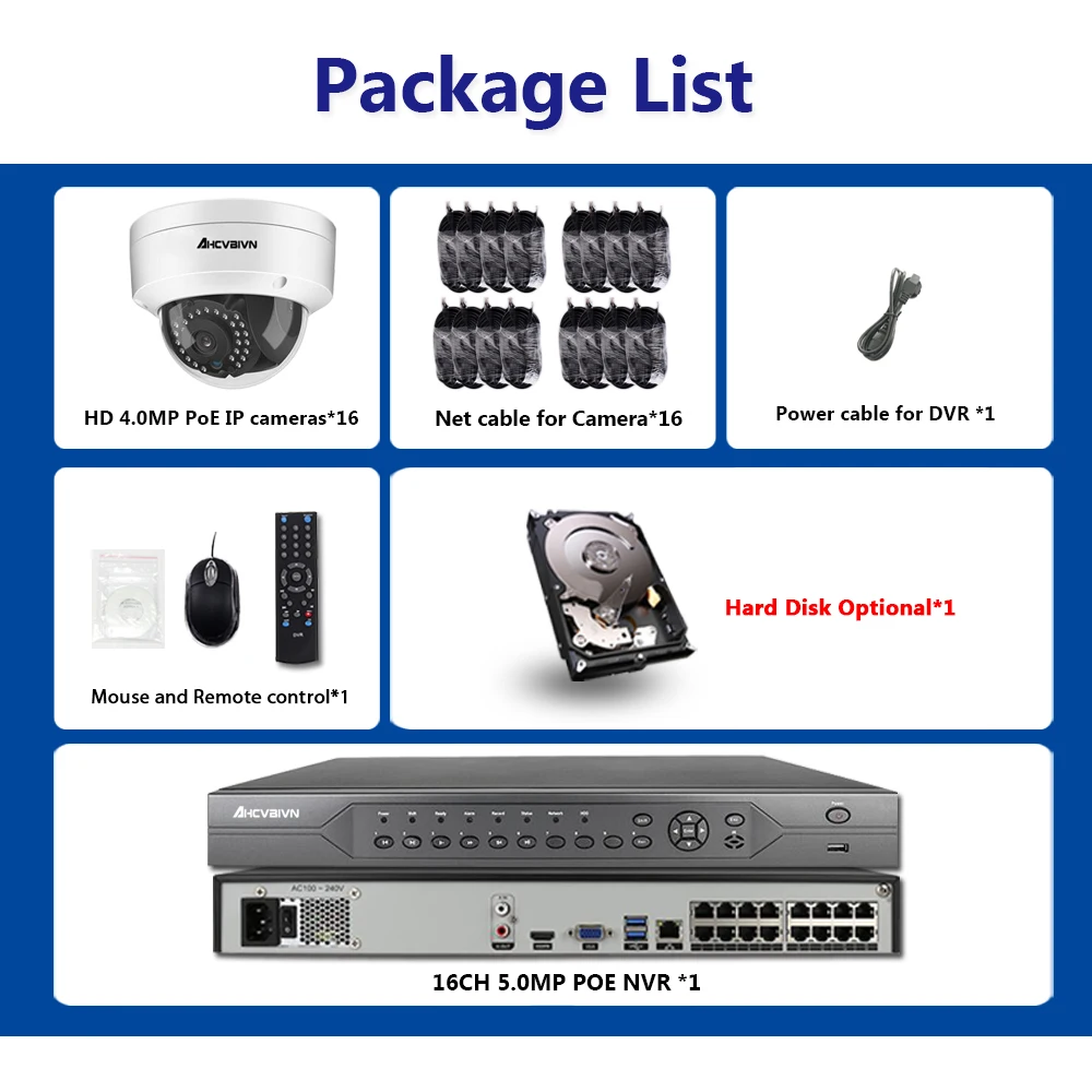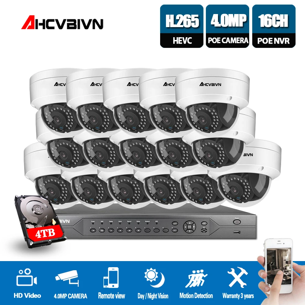 16CH 4MP 5MP POE NVR CCTV Security System 16PCS IR In/Outdoor Dome Vandal-proof IP Camera P2P Video