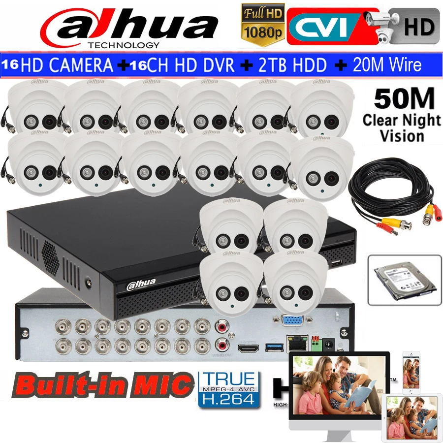 HIGH QUALITY DAHUA 1080P CCTV CVI camera waterproof Dome camera Built-in Mic HAC-HDW1200E-A 16CH HCVR5116HS-S3 c