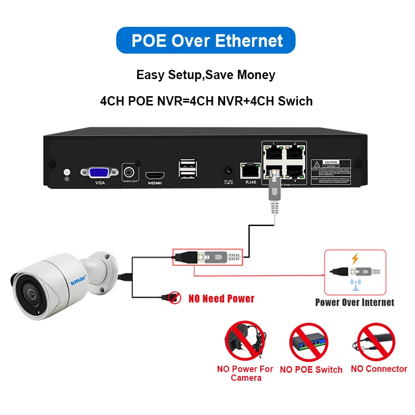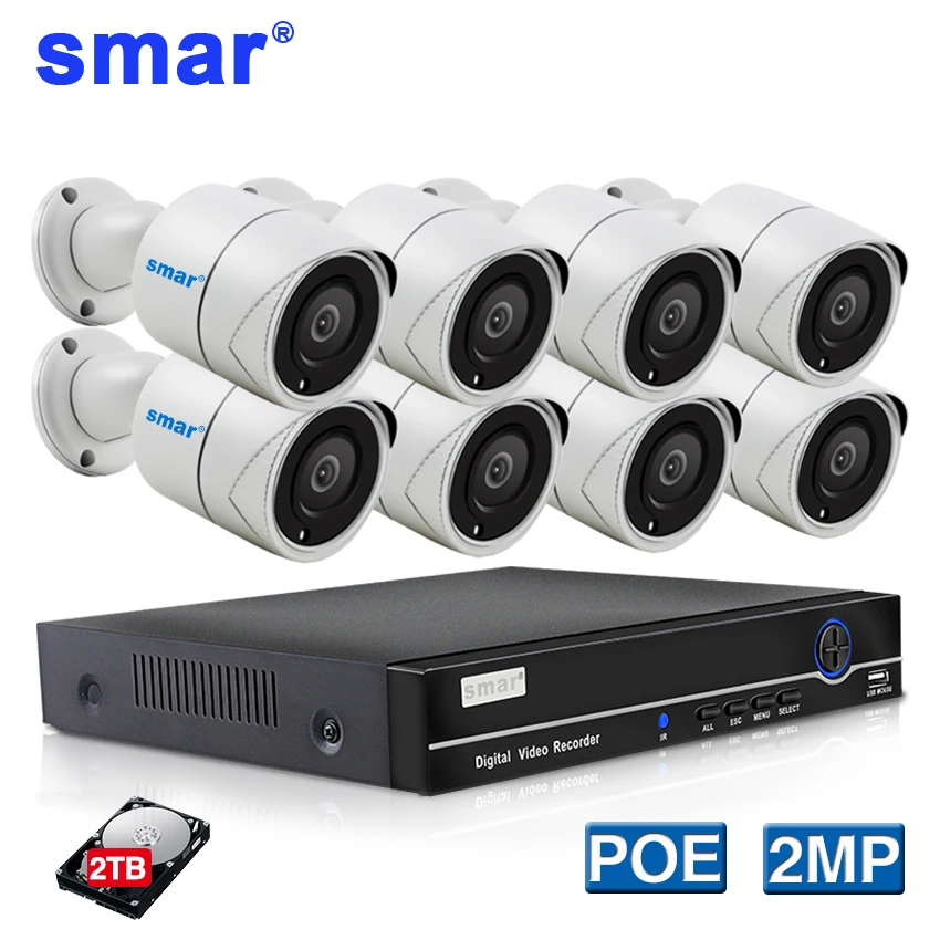 Smar H.265 HDMI 1080P IP Camera 8CH POE NVR Kit Metal 2.0MP IR Outdoor Waterproof IP66 CCTV Securit