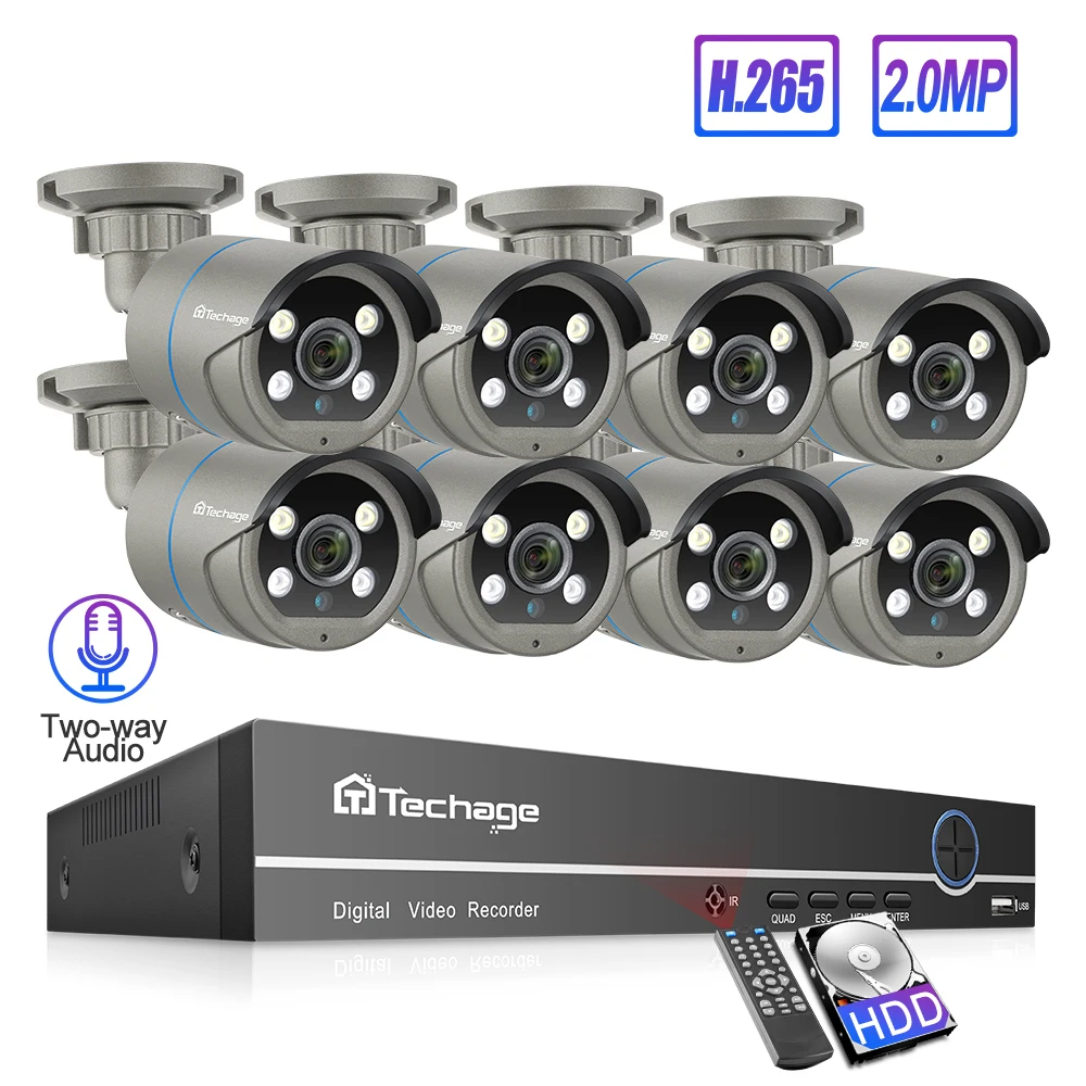 Techage 8CH 48V H.265 POE NVR AI CCTV Camera System 2-Way Audio Sound Speaker Record Waterproof Sec