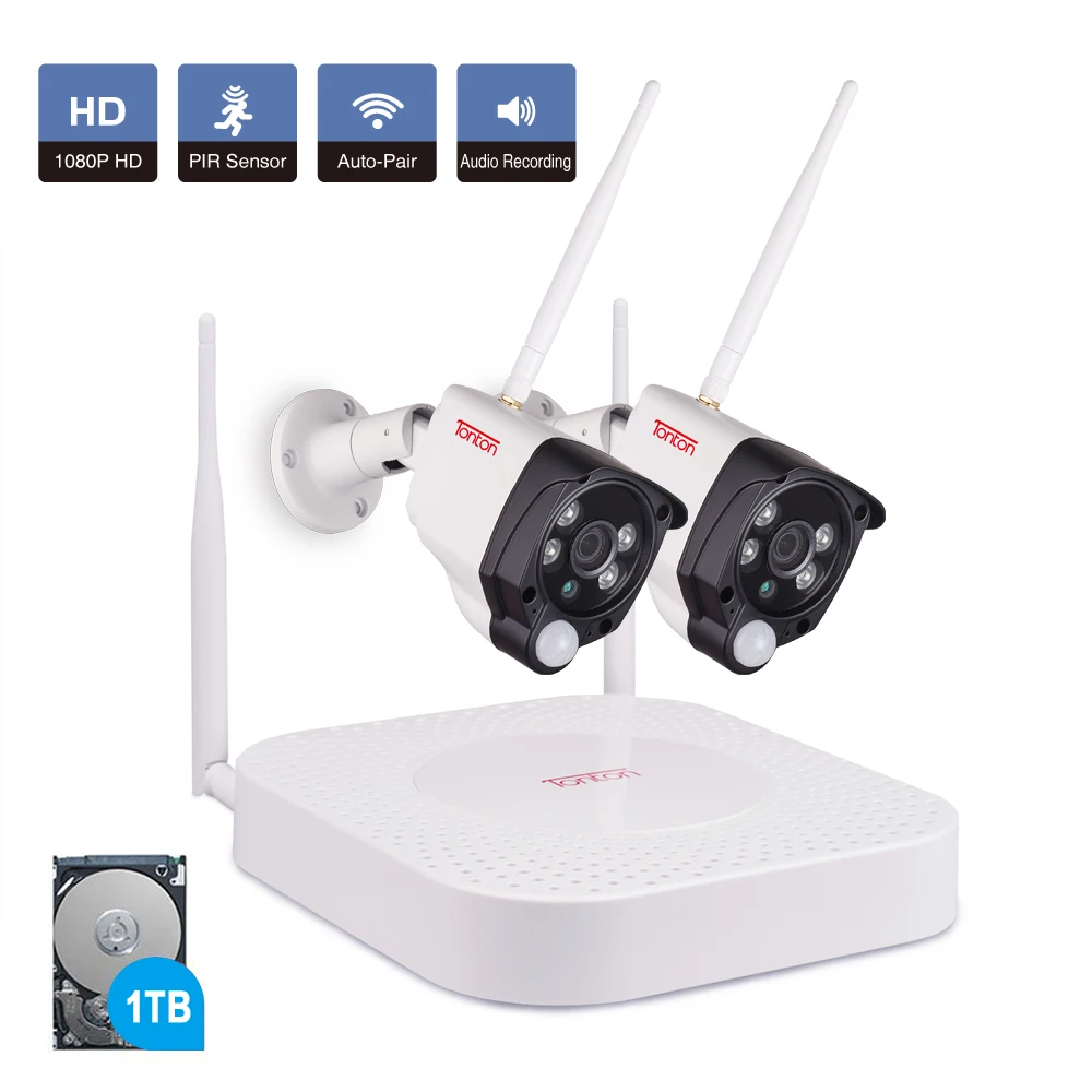 Tonton 4CH 1080P Wireless CCTV Camera Security System Kit Audio Record 1TB HDD NVR wifi kit 2PCS Wa
