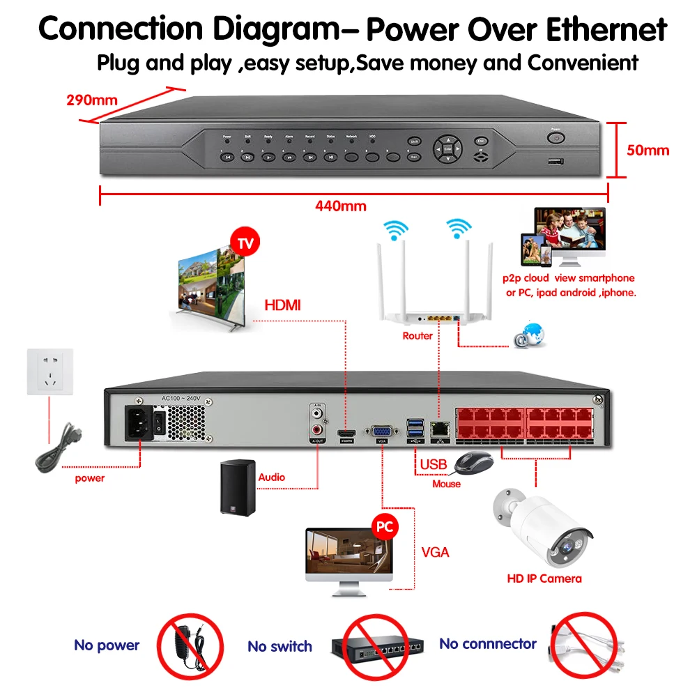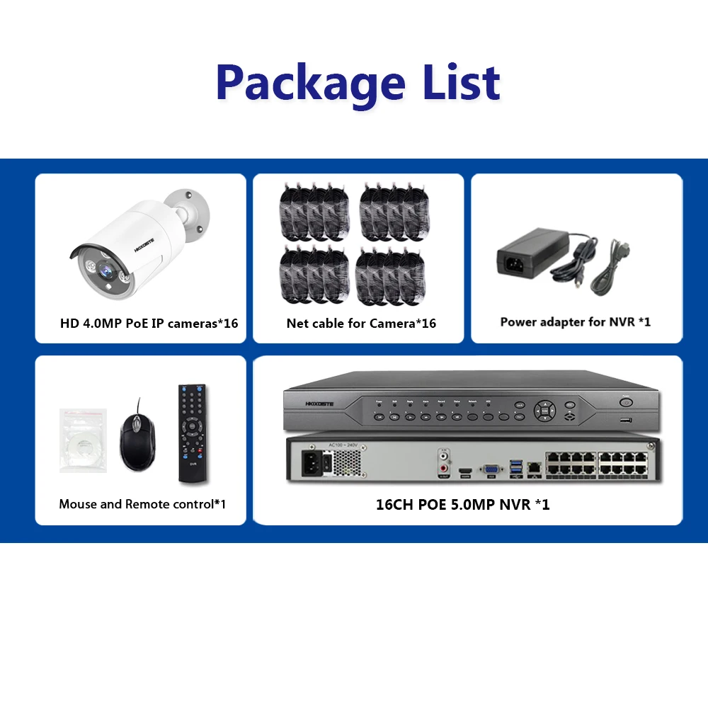 16CH 5MP NVR CCTV Camera Security System 4MP Weatherproof Indoor outdoor POE IP Camera Video Securi