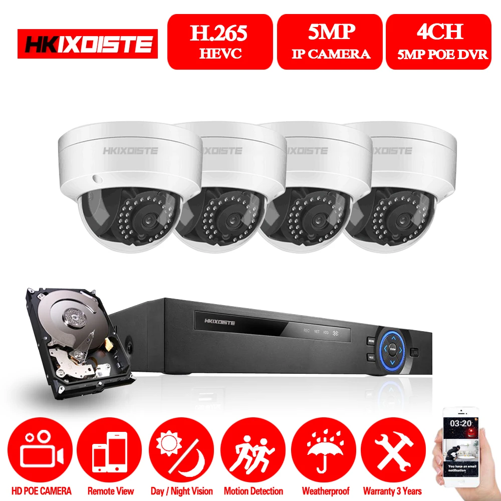 Review H.265 CCTV System 4CH 5MP POE NVR 5MP IP66 Vandalproof Dome Security Onvif IP Camera Audio Record S
