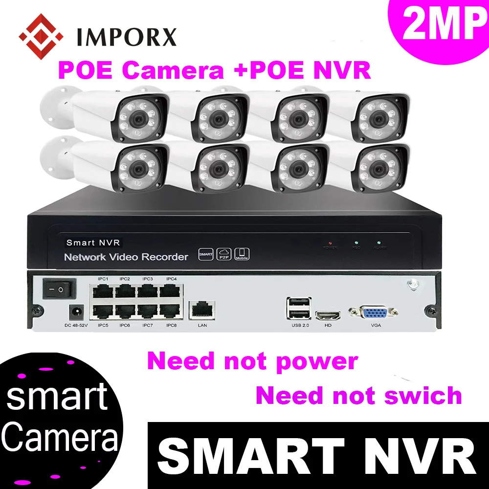 IMPORX 2MP 1080P CCTV System 8ch HD POE NVR kit 2TB HDD Outdoor IR NightVision IP Wifi Camera Secur