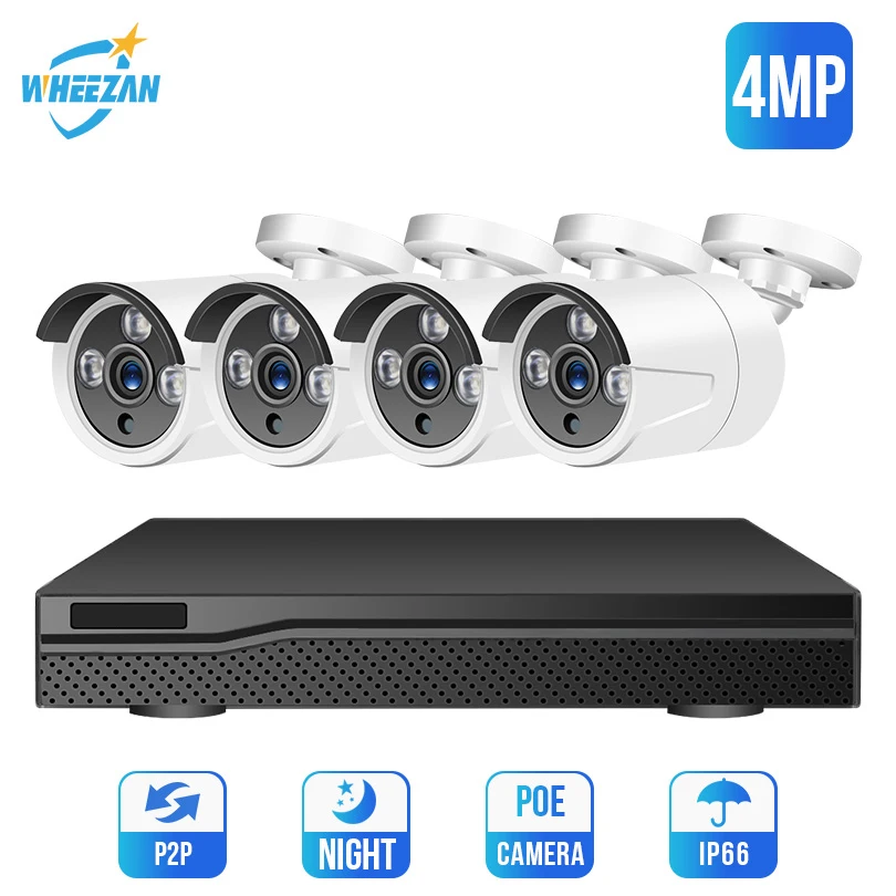 Wheezan Security Camera System 4MP CCTV 2TB HDD H.265 POE NVR Onvif 4CH P2P Home Outdoor Video Surv