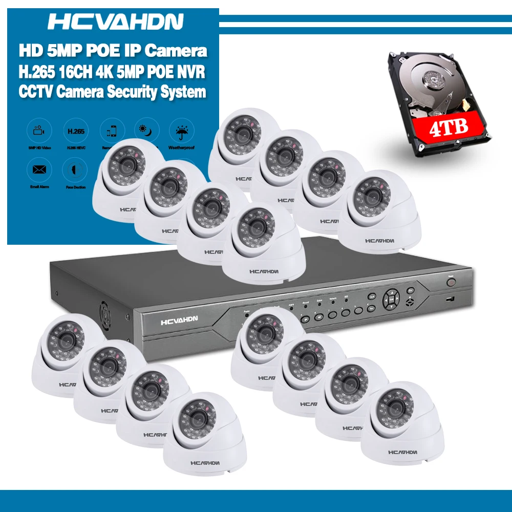 16ch 5MP IP CCTV Camera System PoE H.265 CCTV Camera System 48V 5mp Surveillance Kit PoE AC100-240V