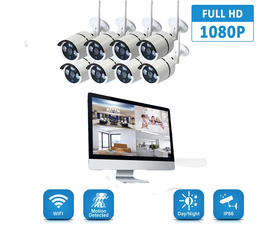 HIGH QUALITY 2MP 8CH NVR Kit 1080P Wireless Bullet IR NightVision Outdoor CCTV Camera Security System Surveillan