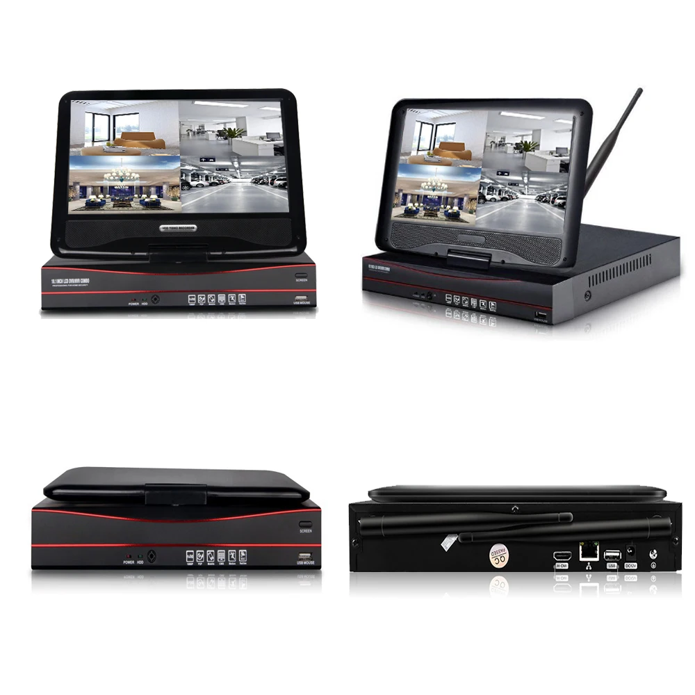 REVIEW TOP SELLER 4CH Home Security Wifi CCTV System Wireless NVR Kit 10" LCD Monitor Screen 720P 1MP Outdoor IP Came