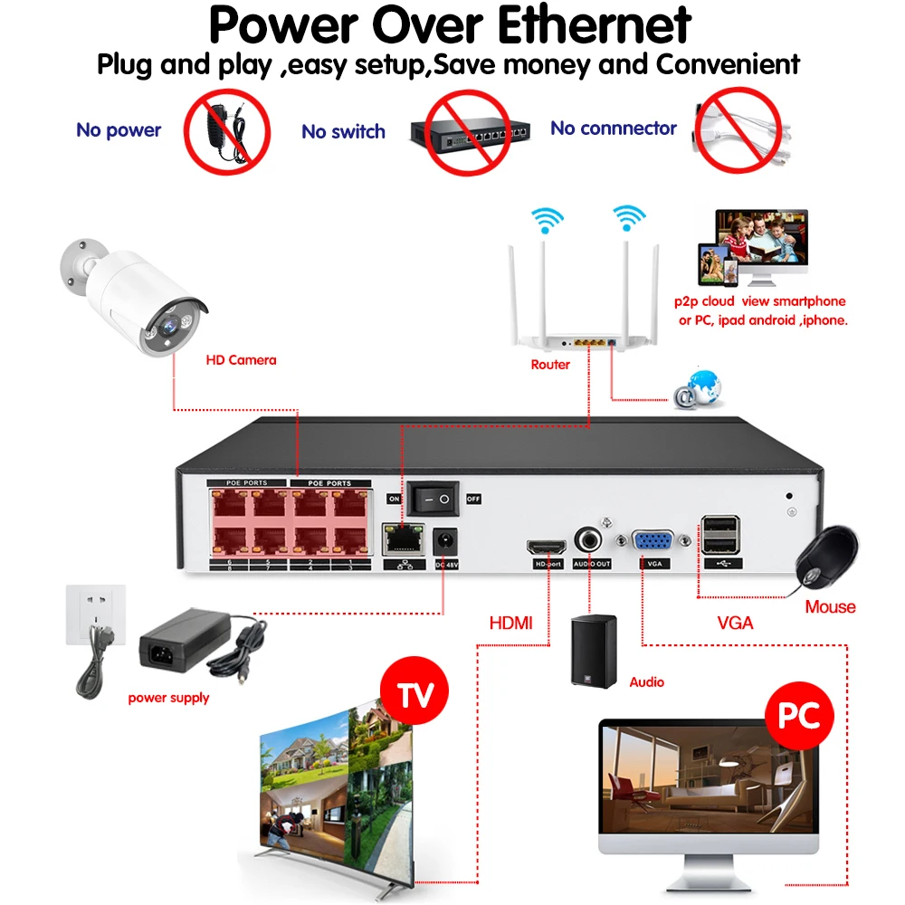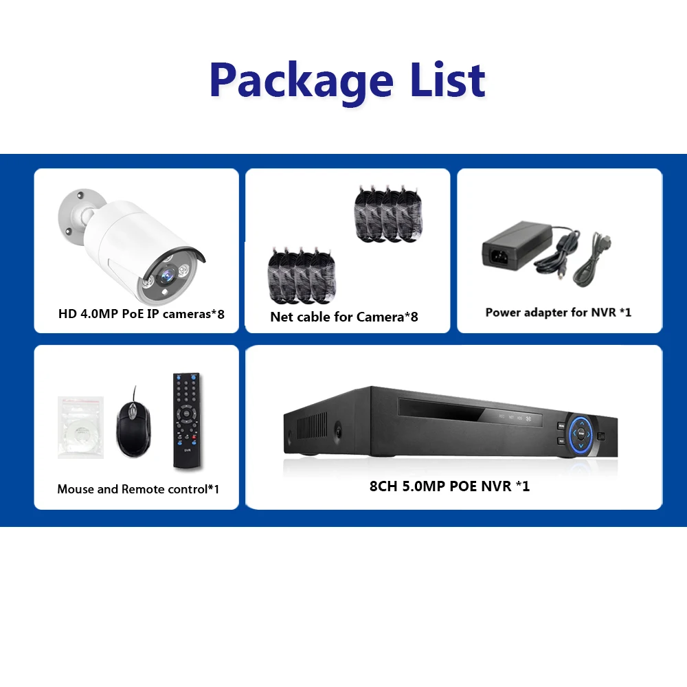 8CH 5MP Resolution POE CCTV Surveillance Kit 4mp IP Security Camera System NVR 2592*1944 Video Outp