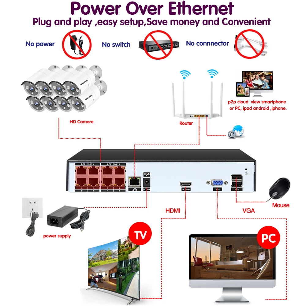 HD H.265 5.0MP POE Security Camera CCTV System 4CH 8CH NVR With 2592*1520 4MP IP Camera Outdoor Day