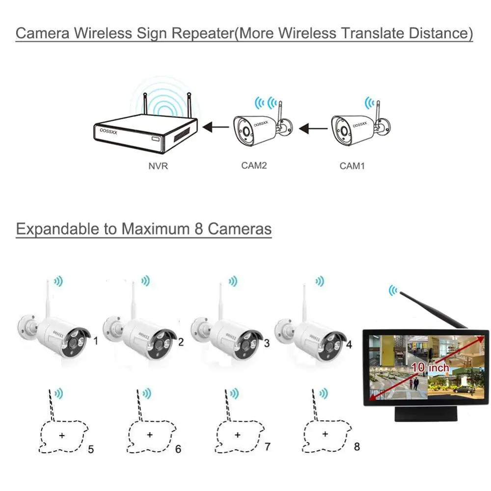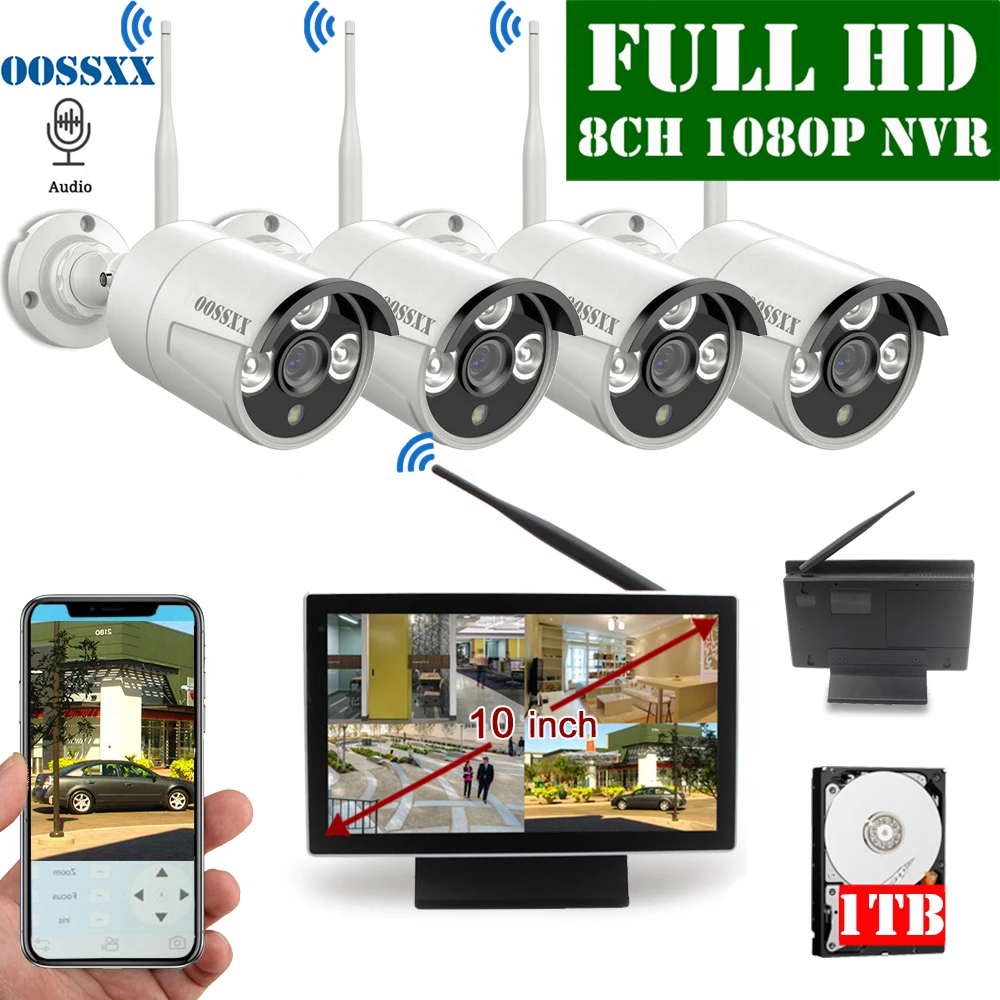 Best Quality OOSSXX 8CH 1080P Wireless NVR Kit 10' Monitor Wireless CCTV 4pcs 1080P Audio Indoor Outdoor IP Came