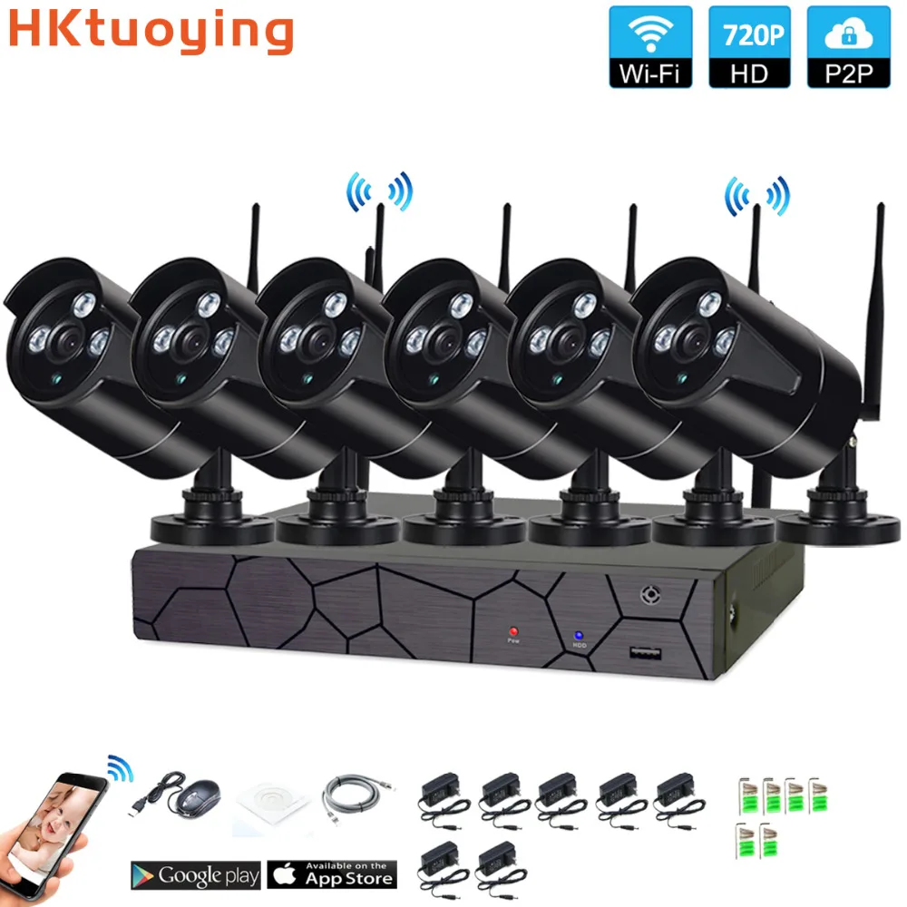 ORIGINAL Plug and Play 6CH 1080P HD Wireless NVR Kit P2P 720P Indoor Outdoor IR Night Vision Security 1.0MP