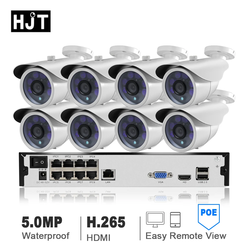 HJT HD 8CH H.265 5.0MP POE NVR Kit CCTV System IP Camera Outdoor Waterproof Video Security Surveill