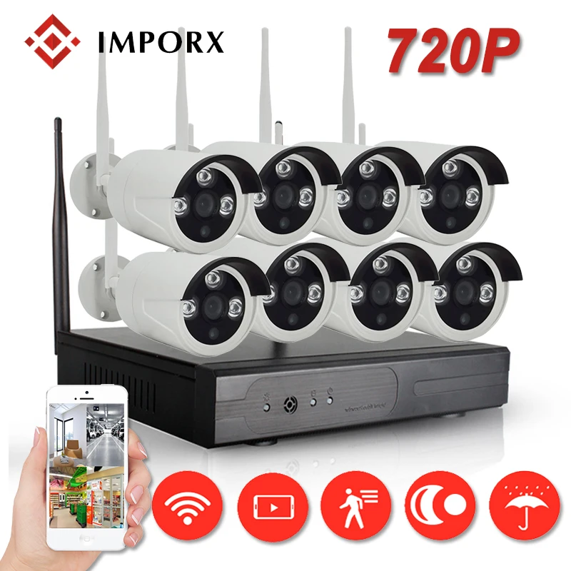 ORIGINAL IMPORX 720P 8CH CCTV System Wireless Camera NVR 8PCS 1.0MP IR Outdoor Wifi IP CCTV Security Camera
