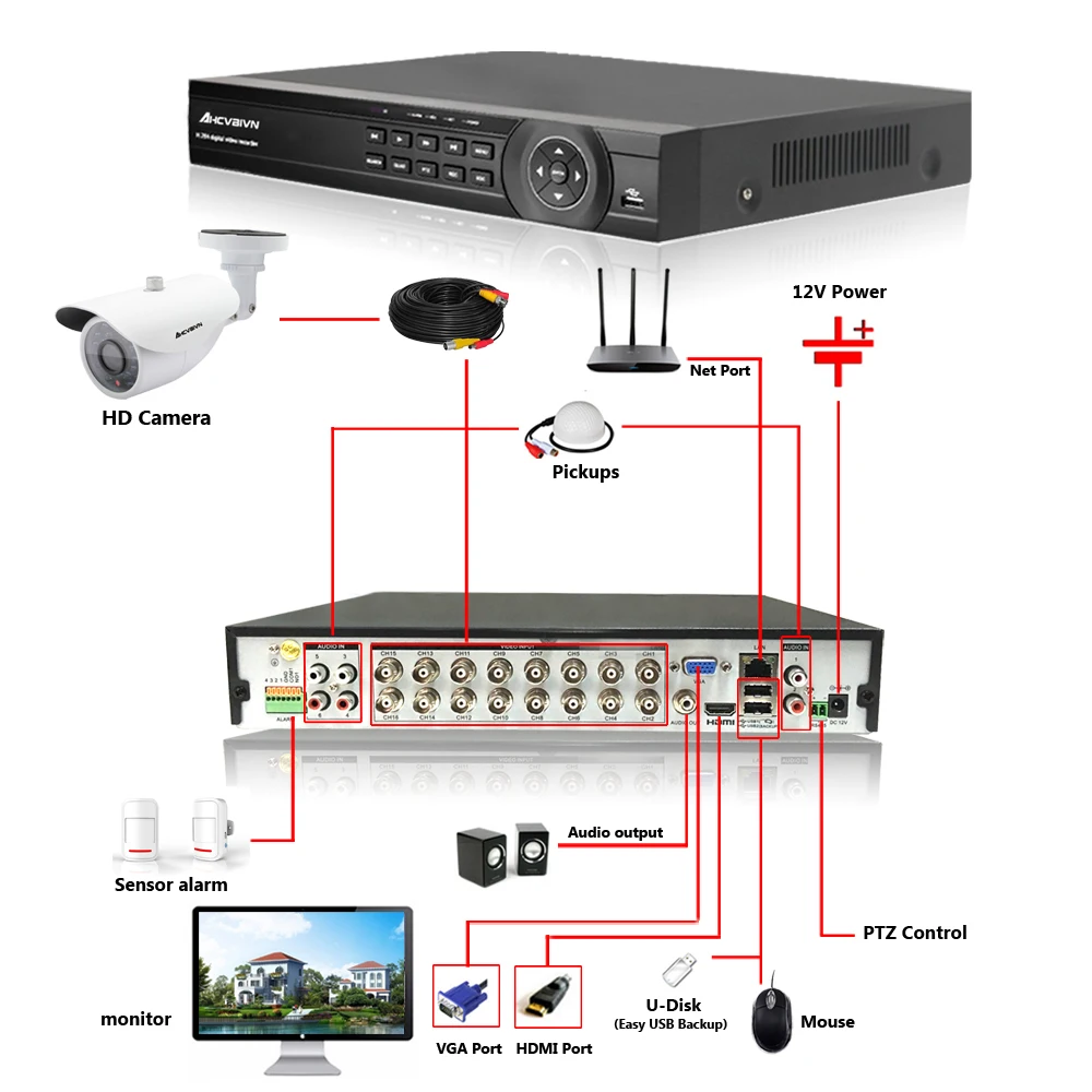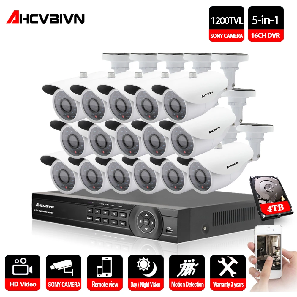 AHCVBIVN AHD CCTV System 16CH AHD 1080P CCTV DVR Kit HDMI 1.0MP SONY 1200TVL IR Cameras Security Sy