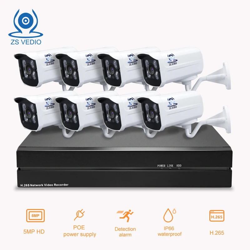 ZSVEDIO H.265 IP Camera 8CH POE NVR 8CH 5.0MP POE CCTV Camera Kit Outdoor Waterproof 4IR Night Visi