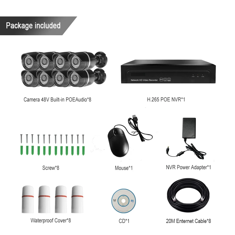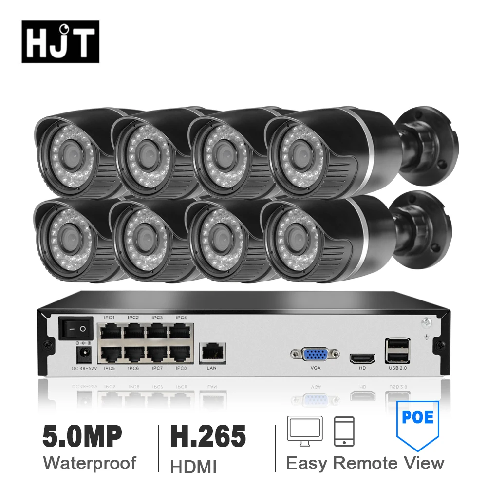 HOT Sale HJT 8CH H.265 5.0MP Cameras System POE NVR Surveillance Kit Security CCTV Set Outdoor IP Camera Out